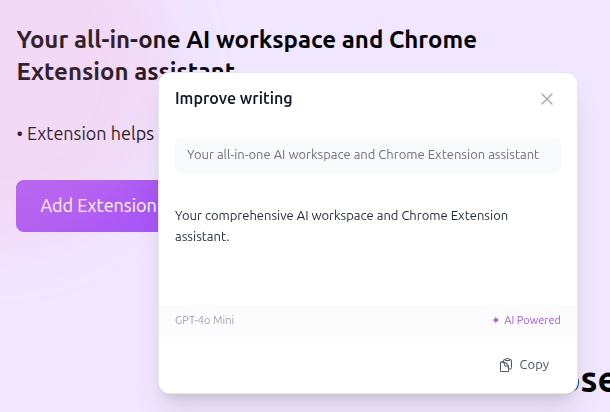 A response modal appears with the AI-generated result. You can: